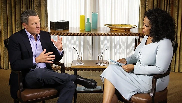 Армстронг (в отличие от многих других разоблаченных допингеров) не стремится уйти в тень и спокойно говорит о своем прошлом. При этом (снова в отличие, например, от той же Мэрион Джонс) он не пылает раскаянием и скорее иронизирует, чем скорбит.