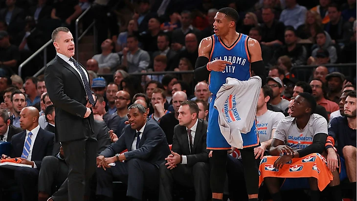 К сожалению Расс, а хотелось бы чтобы это был Донован. До начала сезона, я не верил в них, но считал что у них есть маленький шанс удивить всех, сейчас я и этого шанса не вижу, они мне напоминает по потенциалу плохую версию Хьюстона сейчас, простите фаны Рокетс, я буду рад если ошибусь, но вы правда верите что с Д’Энтони ваш потолок не финал конференции? И это ещё оптимистично, я не верю даже в финал конференции с Рокетс, я прекрасно видел все 6 матчей со Спёрс и то как на последних минутах, Рокетс лишались тренера, нормальных комбинаций после тайм-аутов и т.д. Вот и с Оклой +- нас ждёт тоже самое, Донован не сильный тренер, суперкоманды мало, команде нужен харизматичный тренер-лидер, который может ломать ход игры(Попович, ЛеБрон, Керр), у Тандер есть потолок и это даже не финал конференции, пора ставить вопрос хотя бы о выходе в ПО. Так, почему же Расс ключевая личность? Уэстбрук, уникальный игрок, который творит нереальные вещи, но тянет команду в свою сторону и пока это сторона со знаком -, но только он может исправить ситуацию, ни Джордж, у которого летом новая жизнь может наступить, ни Мело, который просто радуется жизни не в Нью-Йорке, только Расс может преобразовать Оклу в контендер, он действительно не имеет минусов, те кто скажет что он не умеет защищаться, пусть заглянет на basketball reference или nba stats, ну или посмотрит защиту Уэстбрука в клатч моменты, с ним на площадке Окла в пересчёте на 100 владений набирает на 6 очков больше, также с ним в игре, Окла пропускает 98,2 очка(второй показатель после Роберсона, среди игроков сыгравших не меньше 200 минут) те кто говорят, что он не умеет пасовать, они конечно правы, но Расс скорее не хочет, но явно умеет пасовать. Периодически мне кажется, что Расс просто страдает раздвоением и ничего не может поделать со своим альтер-эго, которое просто хочет влетать в кольцо с мячом. Чёрт, мне грустно, Расс, перестань быть Beastbrookом, стань Леброном, ты же правда это можешь.