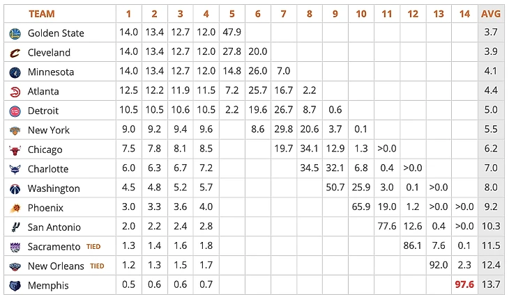 Немного истории – лотерея не всегда была частью НБА, а появилась из-за особо наглых сливов. В 1984 году «Хьюстон» второй год подряд «сливал», чтобы получить пик повыше, и новый комиссионер НБА Дэвид Стерн решил реформировать систему – вместо двух худших команд равные шансы на 1-й пик получали все команды, не попавшие в плей-офф. Три года назад было сделано последнее изменение, которое вступило в силу в прошлом году – шансы трех худших команд лиги получить 1-й пик уменьшились до 14 процентов для каждой (в 2017 они были равны 25, 19,9 и 15,6 процента соответственно).