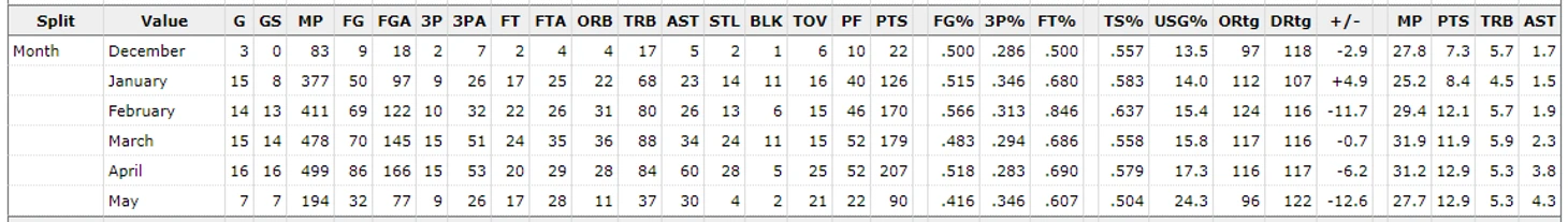 Вопросов по Тэйту и Мартину меньше – от первого без ума в офисе, он занял место Такера и стал заводилой, эмоциональным лидером в раздевалке. По второму есть вспышки даже стать больше, чем просто ролевой игрок, но все же лучшие свои цифры он показал, когда команда ни на что не претендовала, что не отменяет того факта, как сильно он будет хорош в роли 3&D исполнителя.
