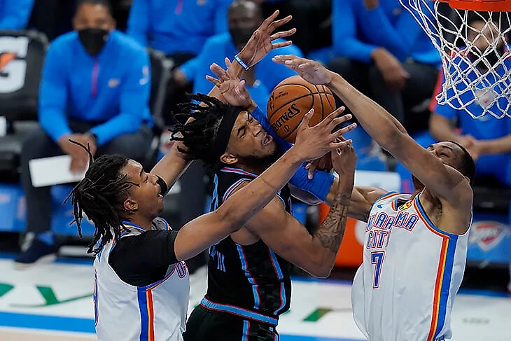 Одна из потенциальных сделок, которая может свершиться – это Симмонс. Нужно понимать, что если кому и можно продать по близкой к запрашиваемой цене Симмонса, то это «Кингс». Тут даже может получиться обмен Фокса+Хилда, если офис «Сакраменто» окончательно признается в собственной неадекватности, но это лирика. «Сакраменто» где-то очень рядом с большим обменом, и это может быть Симмонс или Сиакам (Халибертон вполне впишется в «Торонто»). В общем, я удивлюсь, если эта команда сохранит костяк до конца сезона.