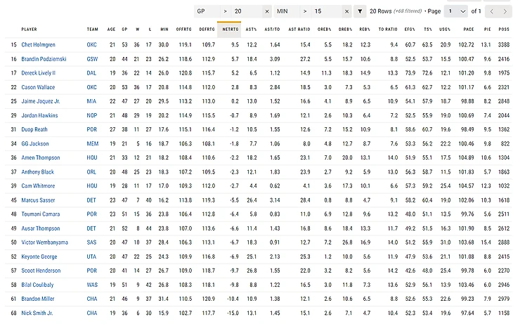 Off Rtg: 119.4 (6th of 30) Def Rtg: 114.7 (12th of 30) Net Rtg: +4.6 (7th of 30)