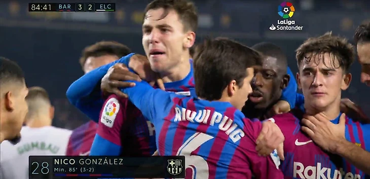 Нико Гонсалес дебютировал 15 августа 2021 года против Реала Сосьедада и получил желтую карточку. Свой первый гол он забил 12 декабря, открыв счет после передачи Гави, а 18 декабря сделал счет победным в матче с «Эльче», снова отдал ассист Гави.