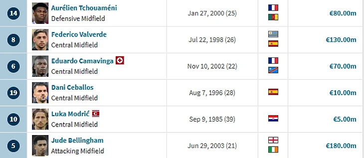 Также мне не понятен еще один момент (думаю, он вообще многим непонятен). Почему Перес летом купил абсолютно бесполезного в этой ситуации Эндрика? У них ушел главный человек в полузащите и сейчас попросту нет человека, который бы взял волшебную палочку и стал бы управлять такой машиной, как «Реал Мадрид» (такой человек есть конечно, но он играет на правом фланге защиты). Снизу будет список полузащиты Сливочных на этот сезон, и скажите мне: есть ли тут игрок, который прекрасно играет весь сезон (кроме Вальверде)? А правильный ответ - нет. Уровень полузащиты в этом сезоне сильно не удивляет. Беллингем в начал сезоне играл глубже - не получалось, потом стал играть выше и выдал несколько хороших игр, а потом ничего словно и не было (хотя была восхитительная игра с «Барсой» в финале кубка в апреле. Тчуамени играл на позиции ЦЗ часть сезона, Камавинга не может выполнять то, что надо. На Модрича уже нельзя полагаться из-за возраста. Правда Себальос пришел на помощь Анчелотти и стал разыгрывающим полузащитником, но потом сломался. Почти то же самое и в защите.