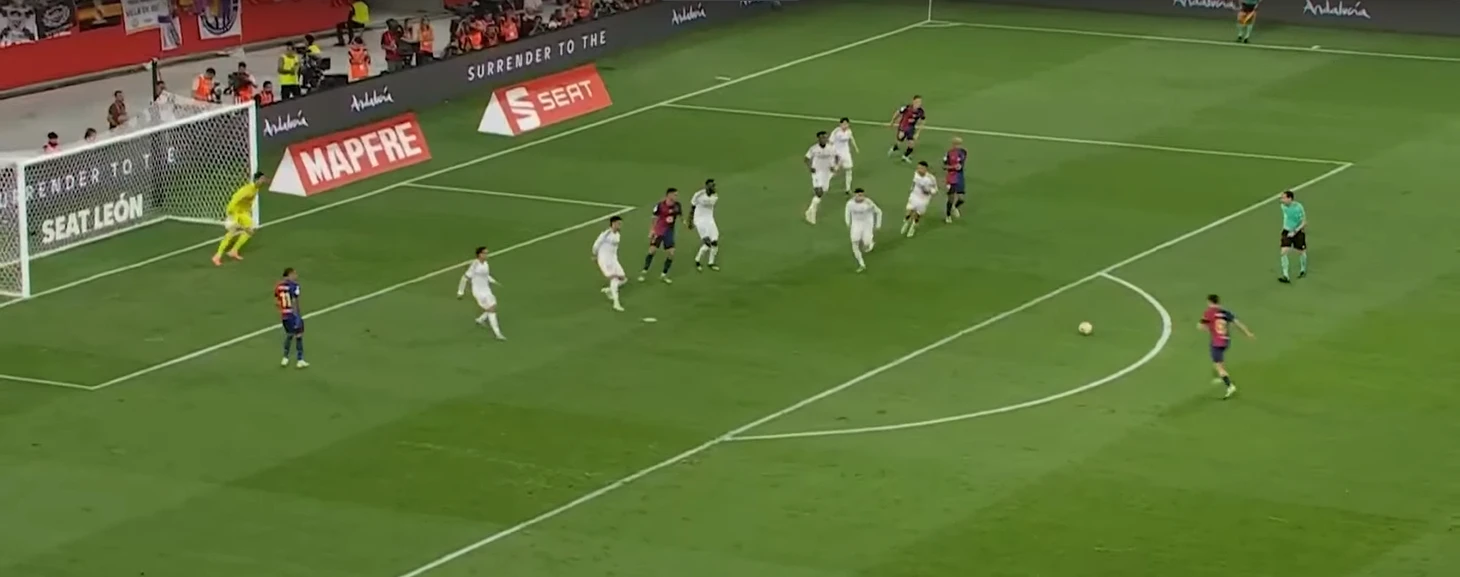 Вот кстати момент этого же гола Педри, который хорошо показывает, насколько плохо влияет нежелание возвращаться в защиту у атакующих игроков.