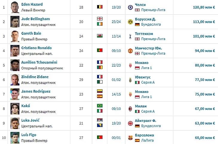 Также не надо забывать, что у «Реал Мадрида» очень мало провальных трансферов, которые входят в топ-10 по цене покупки: