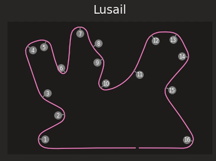 Для наглядности и ориентации можно ознакомиться со схемой трассы Лусаил.