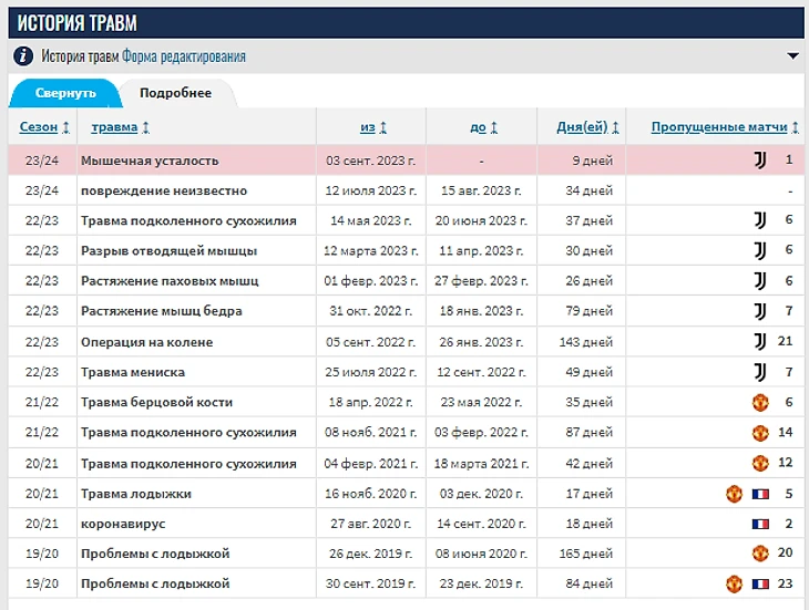 Несмотря на скульптурную анатомию и впечатляющие физические данные, он неприлично часто травмируется. Последний раз Поль отыграл больше половины из возможного игрового времени в далеком сезоне 2018/19 (тогда «МЮ» уволил Моуринью и назначил Сульшера). С тех пор показатель сыгранных минут ни разу не перевалил 51%