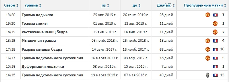 В других сезонах показатель не переваливал 55 процентов и всегда причиной тому были травмы – у него можно выделить три хронических: это лодыжка, берцовая кость и задняя поверхность бедра. Погба четырежды за карьеру в МЮ выпадал больше чем на 10 матчей.