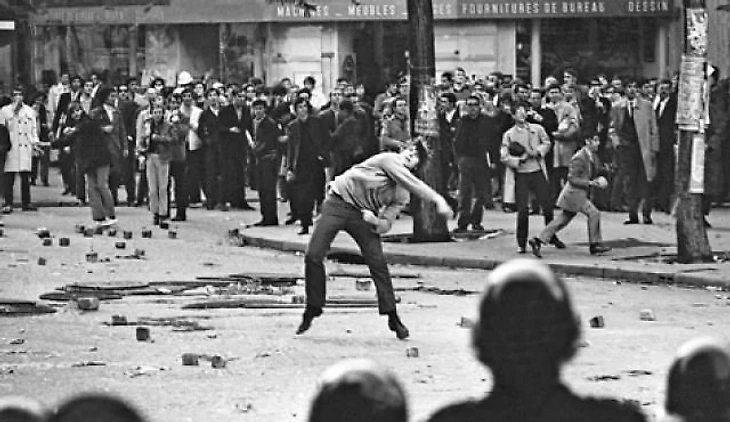 [5] Ма́йские собы́тия 1968 года, или «Кра́сный май» или Май 1968 (фр. Mai 68) — социальный кризис во Франции, начавшийся с леворадикальных студенческих выступлений и вылившийся в демонстрации, массовые беспорядки и почти 10-миллионную всеобщую забастовку. Привёл в конечном счёте к смене правительства и отставке президента Шарля де Голля.