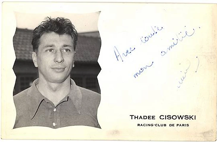 [1] Таде́ Сизовски́ (фр. Thadée Cisowski; 1927 —2005, Шарне-ле-Макон), урождённый Таде́уш Цисо́вский, французский футболист польского происхождения, нападающий. Один из лучших бомбардиров в истории чемпионата Франции. Рекордсмен сборной Франции по количеству голов в одном матче.