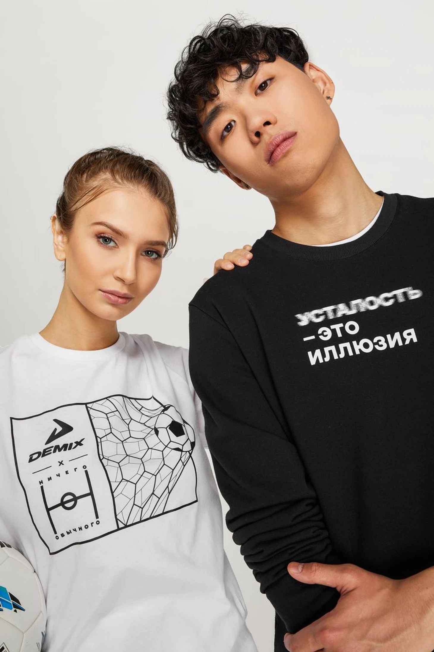 – Мы начали взаимодействие год назад и сделали историю «Футбол – это про нас». Теперь вышла коллекция с главной фразой «Усталость – это иллюзия» на свитшоте и диагональю на футболке. Диагональ – это то, как я всю карьеру играл в футбол. Никогда не умел отдавать разрезающие передачи, запускал мяч подальше, потому что нужно без обрезов. На самом деле, диагональ – самая быстрая возможность обострить. Это наш длинный пас между Demix и «Ничего обычного».