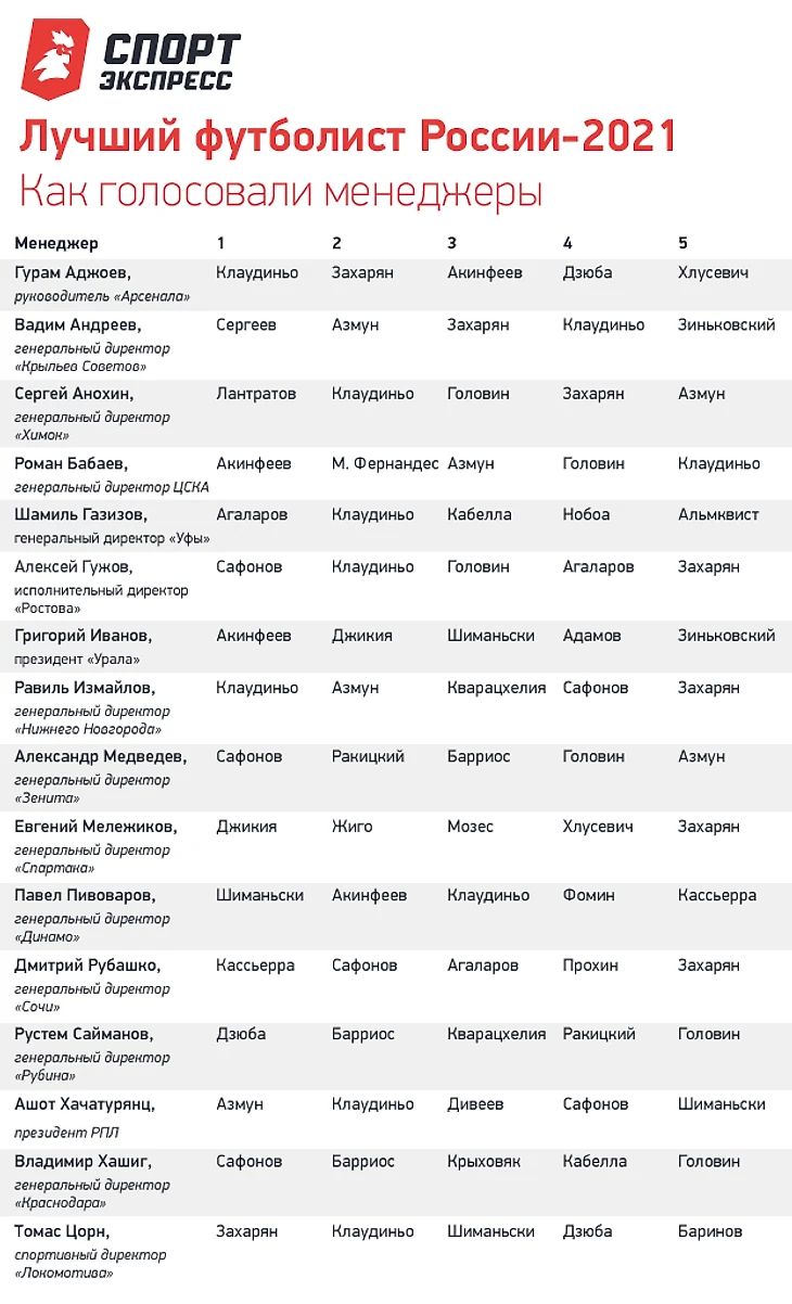 Хотя может кто-то из вас и не слышал, но многие вчера уже прифигели с опроса Спорт-Экспресса на тему лучшего игрока России в 2021-м. Та же работа на sports.ru, которую сделал Дорский, выглядит куда интереснее, там и статистика и про каждого игрока все расписывают (хотя я каюсь, в некоторых номинациях проголосовал, скажем так, по личным симпатиям). Константин Алексеев, одного из членов редакции СЭ, которого я вообще люблю читать, тем более болеет за мой любимый клуб, отстаивал вариант опроса своего издания, где голосовали больше людей (около 50 тысяч человек), причем не только болельщики, но и эксперты, тренеры и менеджеры. На бумаге этот вариант определения лучшего игрока России действительно выглядит оптимальным, тем более на спортсе вес голоса простого фаната весил значительно больше, но на деле мы получили парадокс: в топ-5 игроков субъективного опроса sports.ru попали системообразующие игроки лидеров - Вендел и Шиманьски, лучший бомбардир Агаларов, а выиграл голосование Клаудиньо, то на более объективном от СЭ победил не Клаудиньо, а нестабильно проведших год Азмун, а еще мы увидим в топ-5 Джикию (самый большой фэйл) и Сафонова, который блестяще провел осень, но провалил весну. Тут нужно уточнить, что тема опросов немного разная, спортс выбирал лучших игроков первой части РПЛ, а не всего года, но сути это не меняет.