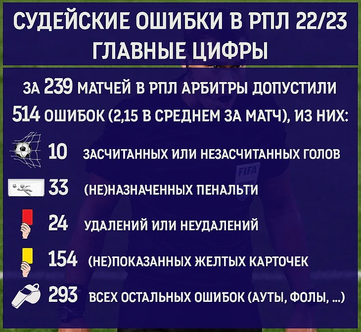 Я посмотрел все матчи РПЛ прошлого сезона и нашел в них 514 судейских ошибок | Как, почему и что вышло?