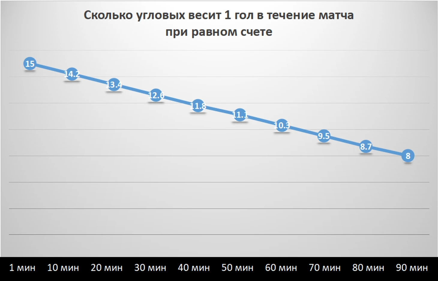 Начнем с угловых, это образец дальнего стандарта, на всякий случай уточню, кто не обратил внимания: стандарты делятся на дальние и ближние в зависимости от места нарушения (специальная карта, которая показывает, где что даётся, будет ниже в документе с общим сводом правил). Ближние и дальние стандарты совсем чуть-чуть отличаются по баллам, их мы посчитаем также на бум, но для начала нужно высчитать значимость дальних стандартов, для чего нам поможет статистика по угловым. Вы можете поискать ее на разных букмекерских и спортивных сайтах и придете к выводу, что обычно число угловых варьируется от 9 до 12 в среднем за матч. Это касается в том числе РПЛ, для удобства можем взять число 10 за средний показатель количества угловых в прошлом сезоне.