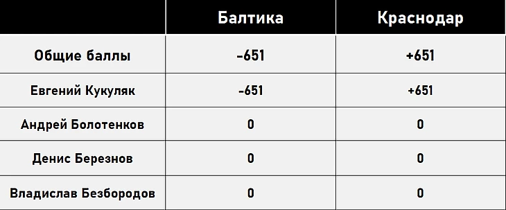 В общем для меня эпизод сложный, поэтому его я оценил, как спорное решение в пользу «Краснодара». «Быки» получили за него 741 балл, но по мелким решениям в пользу «Балтики» можно сделать вывод, что одностороннего судейства не было.
