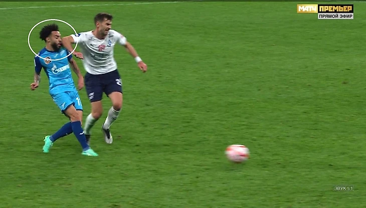 У «Крыльев» в начале встречи тоже были претензии, так как дважды Салтыков падал после столкновения с игроками «Зенита», один раз это произошло в штрафной питерцев, но Чистяков промолчал и правильно сделал, на повторах четко видно, что против игрока «Крыльев» не применяли каких-то запрещенных приемов, обычная борьба корпусом, где маленький Салтыков не устоял на ногах.
