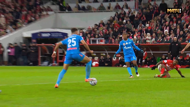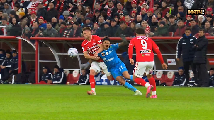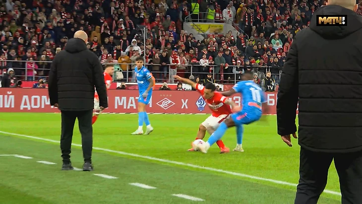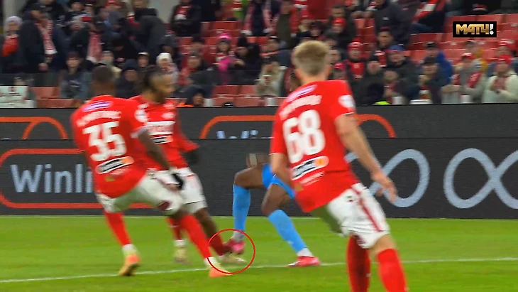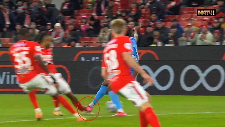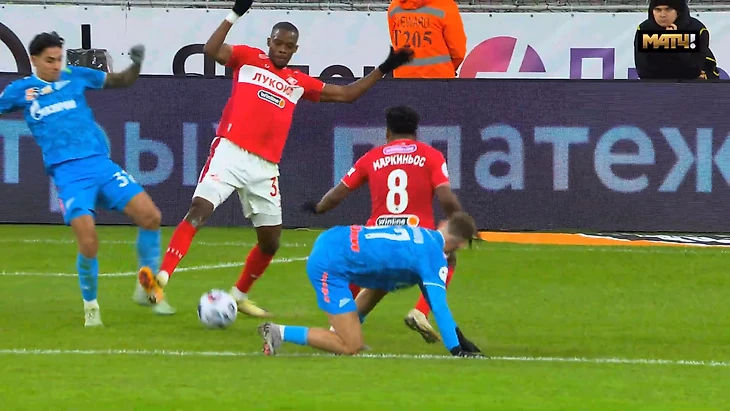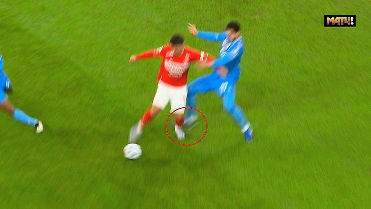 Так уж вышло, что здесь собраны лишь те моменты, где ошибались в пользу «Зенита». Оба из них случились в первом тайме и связаны с непоставленными штрафными в ворота сине-бело-голубых. Сначала Нино зарядил по ноге Мартинсу, шипами подбив пятку. Полузащитнику «Спартака» было больно, но никто из судейской бригады не обратил внимания на эпизод, был назначен аут в пользу «Зенита». Благо, он находился недалеко от центра поля.