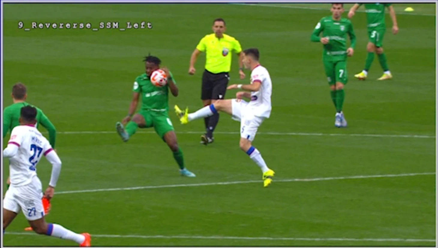 Носок игрока ЦСКА устремлен вверх, касаясь мяча, Умяров же замахнулся снизу и именно он бьет по ноге Кармо, а не наоборот. Поэтому решение Чистякова и бригады ВАР продолжить здесь абсолютно понятно.