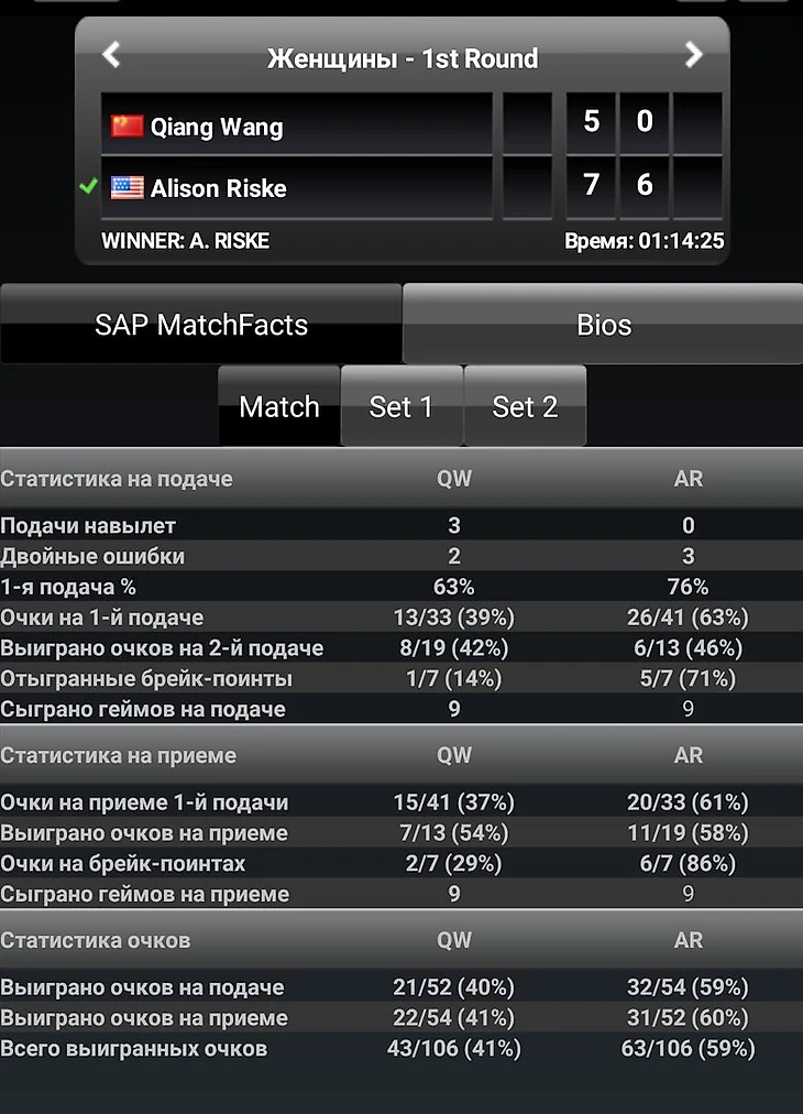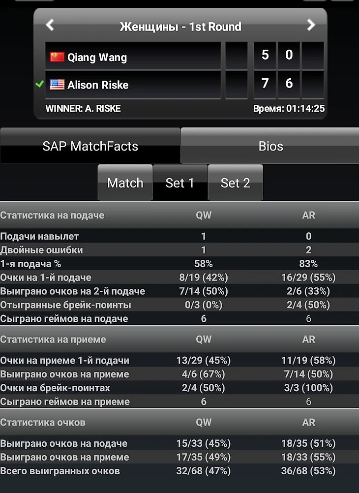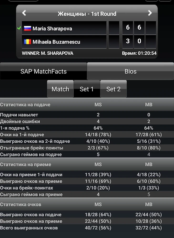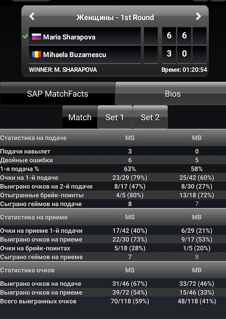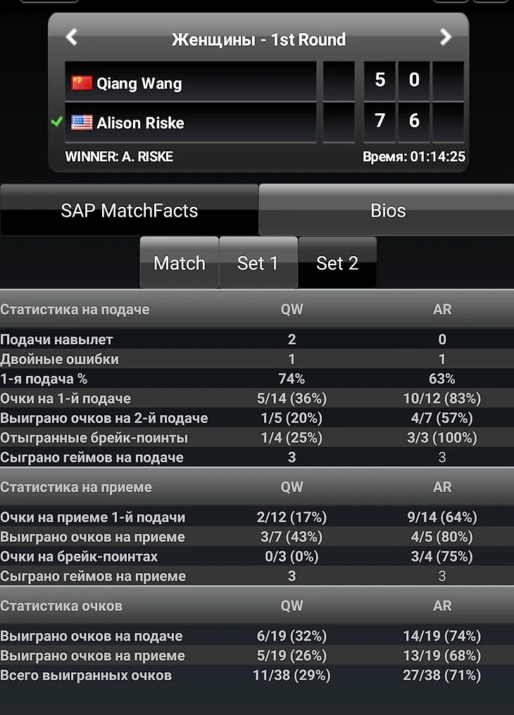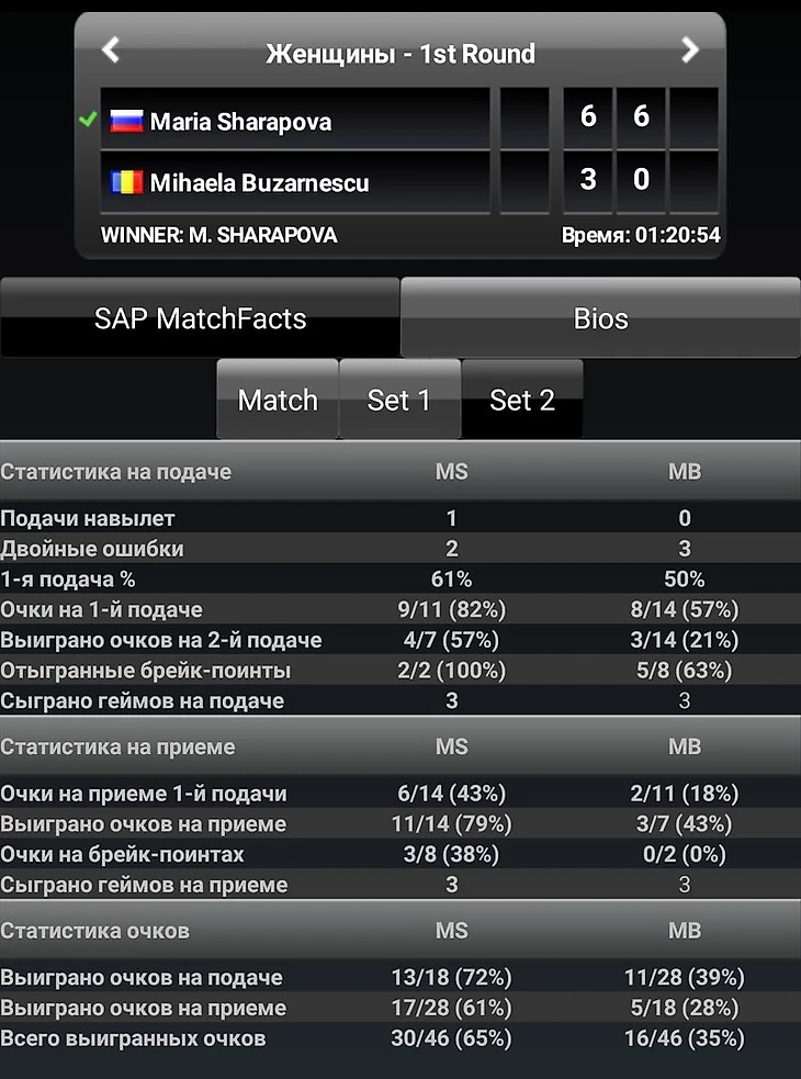 Напоследок посмотрим статистику первых матчей Марии и Элисон в Шеньчжене.