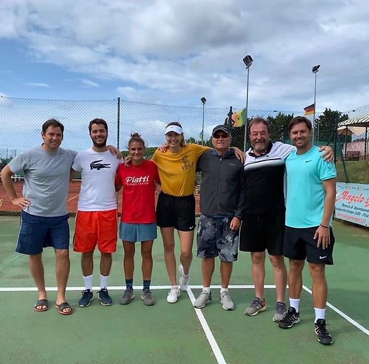 в состав которой также входят Массимо Сартори, тренер Андреас Сеппи, Марко Чечинато и Карин Кнапп, а также Кристиан Бранди и чьи структуры тренируют тех же Сеппи, Борну Чорича, Янника Синнера и Новака Джоковича, за которым сам Пиатти следовал в период между 2004 и 2005 годами, Стен Вавринка и Гарбинье Muguruza.