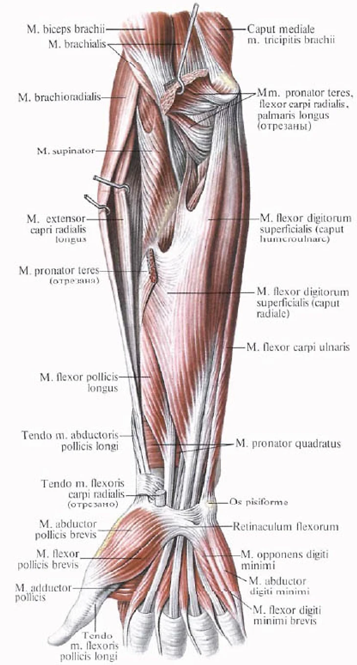 Итак предплечье – часть тела, обеспечивающая как собственные движения так и движения запястья, кисти и пальцев 19-ю мышцами (без учёта собственных мышц запястья и пальцев). Понятно, что каждая из мышц может быть травмирована, но чаще всего травмируются мышцы уже пострадавшие однажды (или даже не единожны), а так же сопряжённые с ними мышцы и ткани. Поскольку каждая мышца переходит в сухожилие, чтобы закрепиться к кости, то сухожилий соответственно в два раза больше. Да, в первом посте я упустил один важный момент: наши мышцы «не умеют толкать», они могут только «тянуть», то есть любое наше движение – это СОКРАЩЕНИЕ мышц! Поэтому то наш организм имеет порядка 640 мышц.