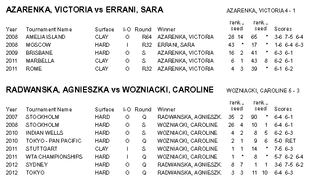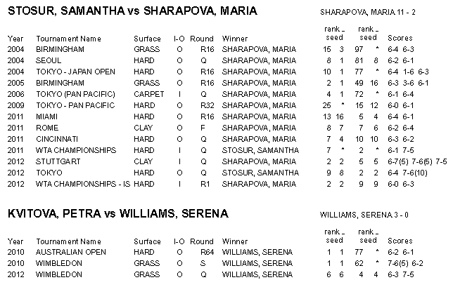 Выставил результаты личных встреч теннисисток кто сыграют в четверть-финалах.