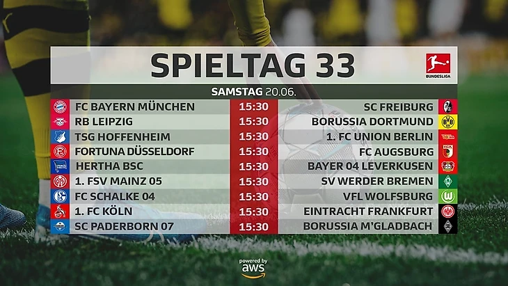 Сегодняшний матчдэй может стать важнейшим в сезоне Бундеслиги. Слишком многое стоит на кону. Все матчи 33 тура Бундеслиги начнутся в одно время - 16:30 по московскому времени! Это, безусловно, добавит огня в и без того сумасшедший по накалу тур.
