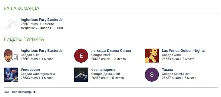 Team H2H NHL / Inglorious Basterds — 1 место.