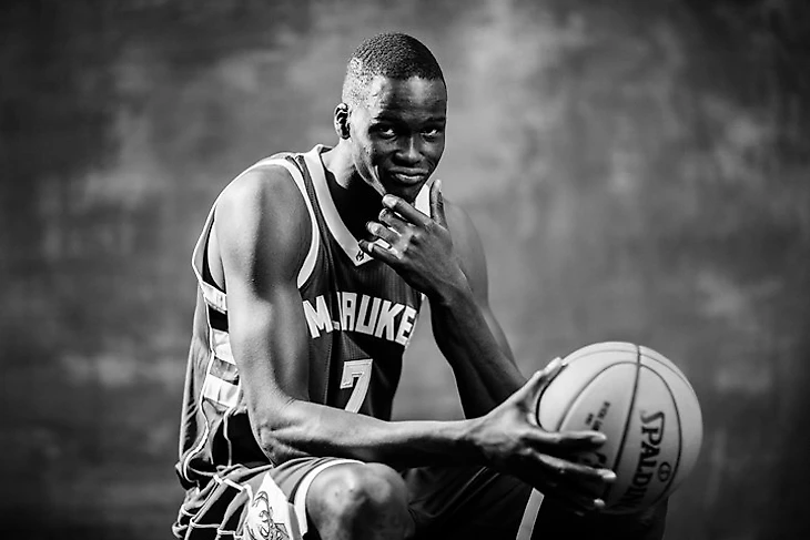 Уроженец Судана, на вид которому все 40, если не больше. С баскетболом знаком всего 6 лет. Не имеет серьезного опыта, хотя бы на уровне студенческого баскетбола. На фоне школьников и любителей выглядит как тот самый единорог Билла Симмонса, но все же очень сырой и зеленый. Больше похоже на конец первого раунда, а то и конец второго.