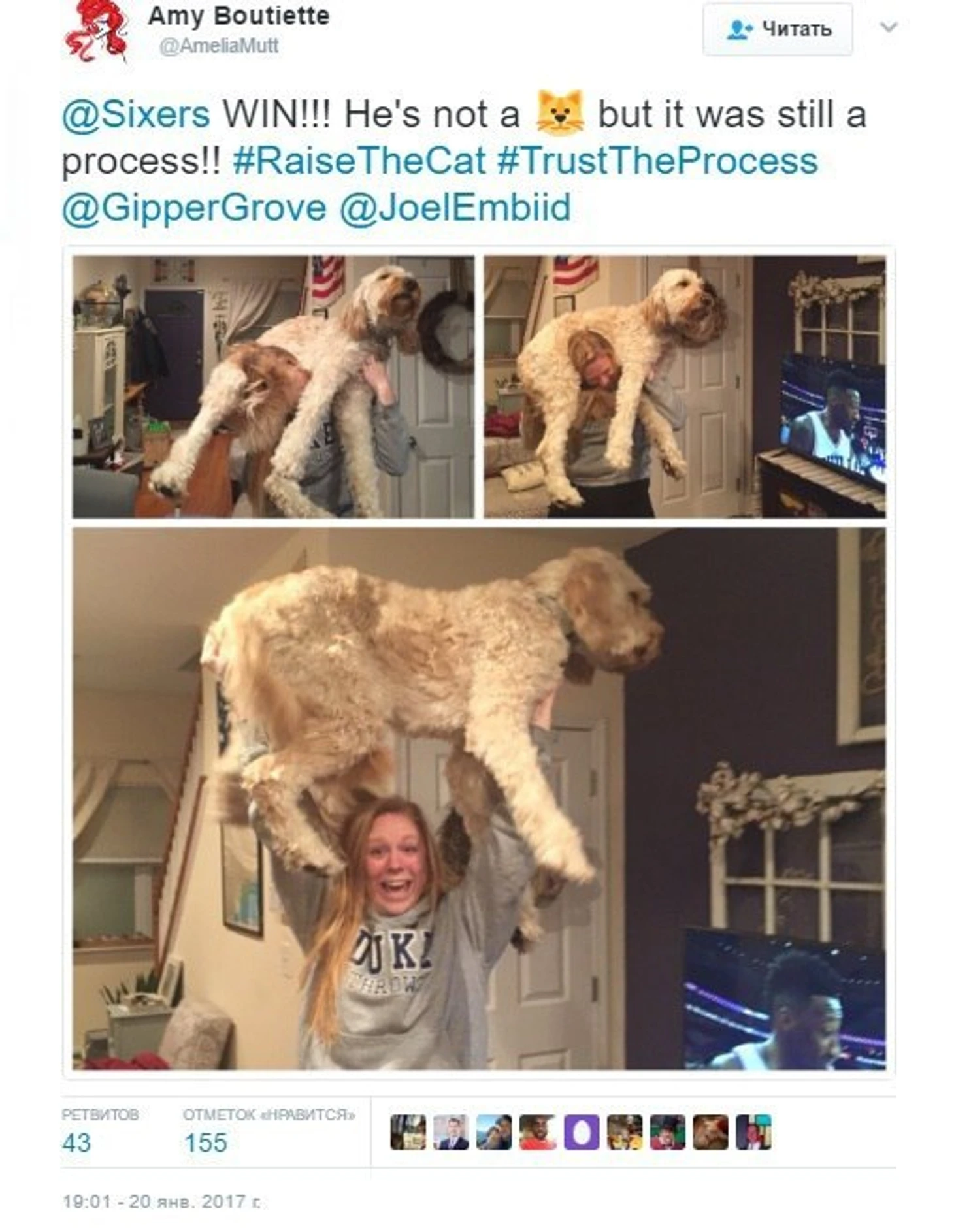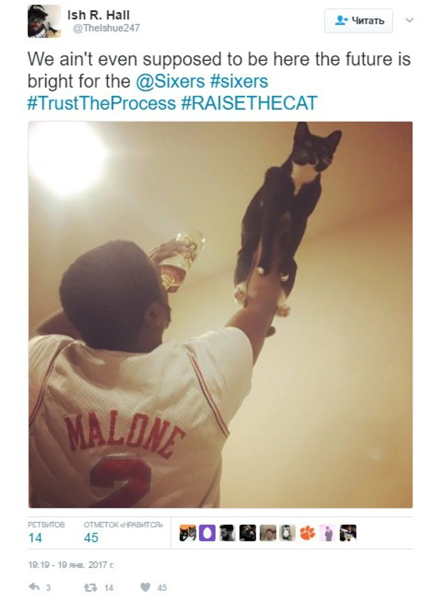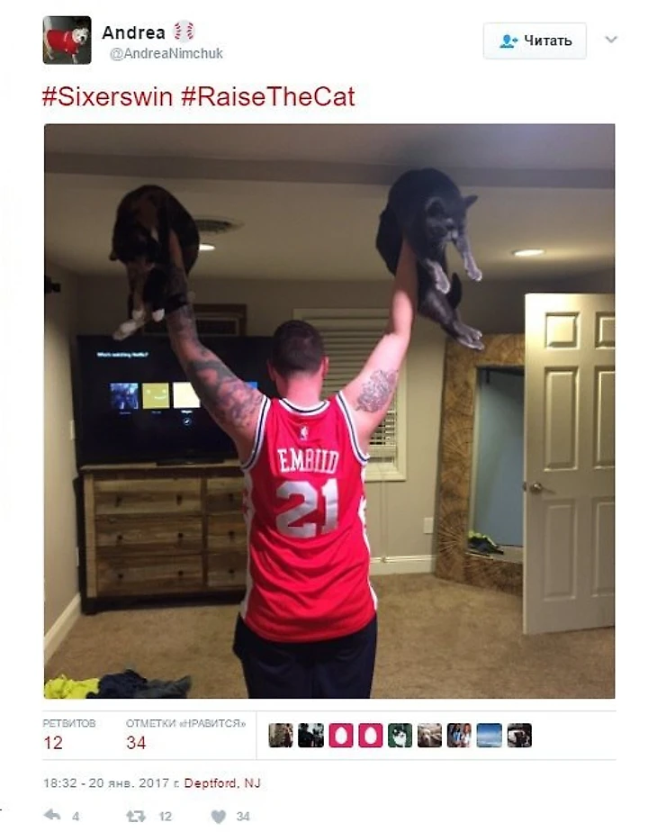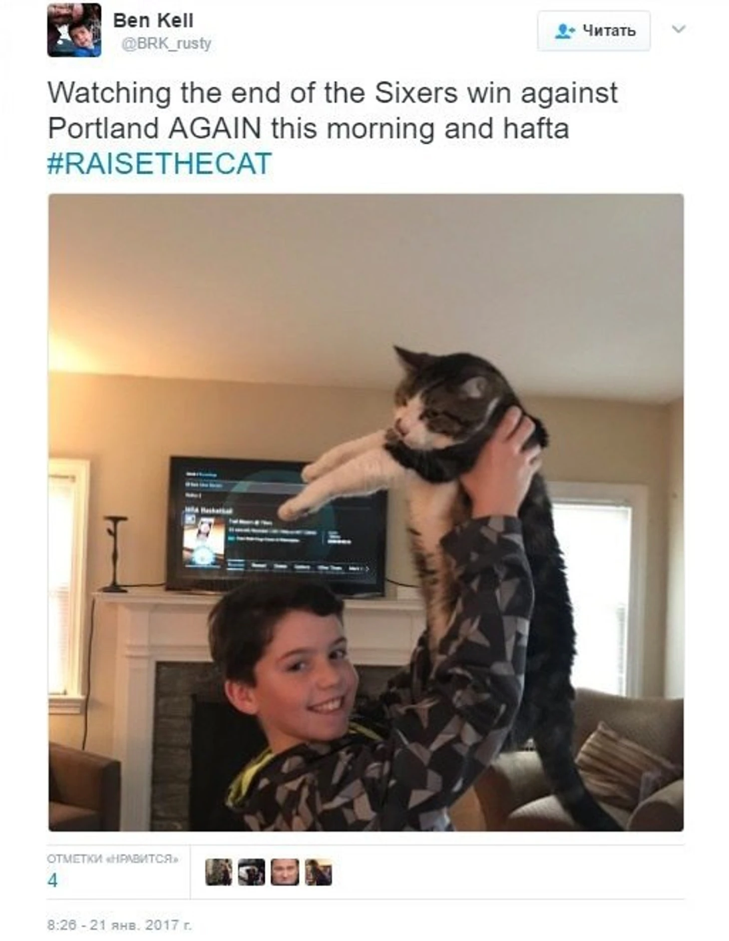 В Филадельфии больны процессом. Фанаты устраивают флешмоб в честь победы, поднимая котов вверх