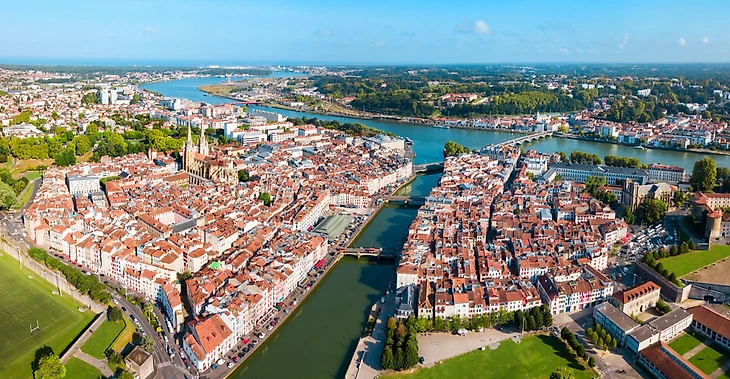 Главный город французской Басконии, расположенный у слияния рек Нив и Адур. Известен своим знаменитым шоколадом и ежегодным Фестивалем Байонны — одним из крупнейших народных праздников Франции. По сути город лежит на стыке двух исторических регионов — Гаскони и Страны Басков. И сегодня это культурная и экономическая столица Французской страны Басков.