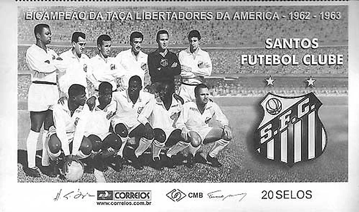 Почтовая марка, посвященная победам «Сантоса» в Кубке Либертадорес в 1962 и 1963 годах