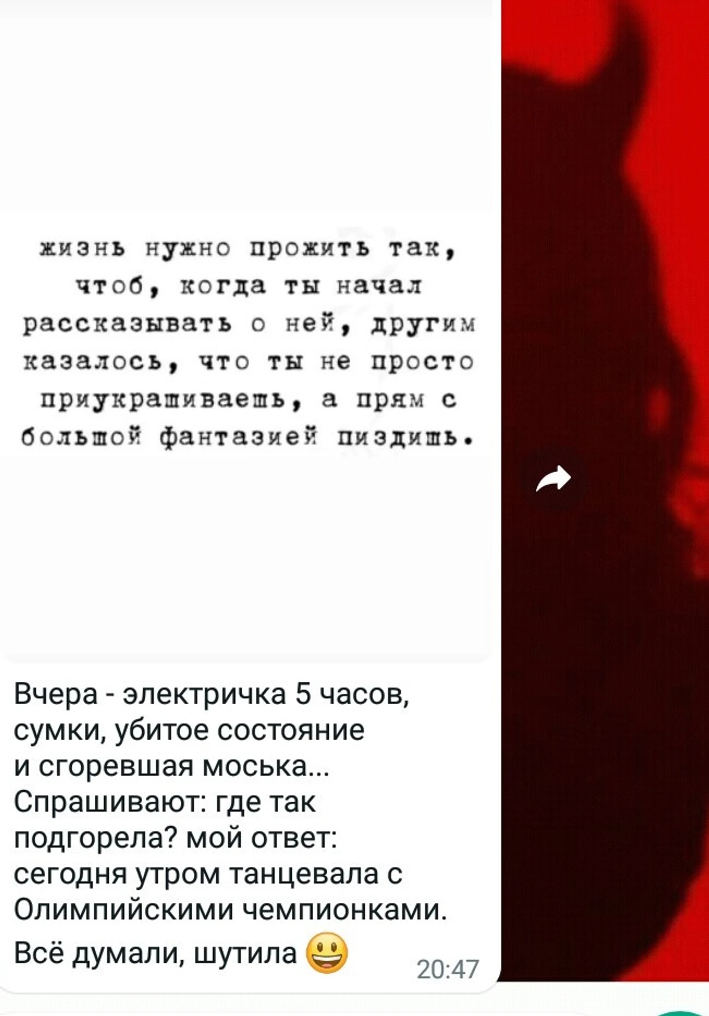 - Та, утром танцевала в Сириусе с Олимпийскими чеспионками!
