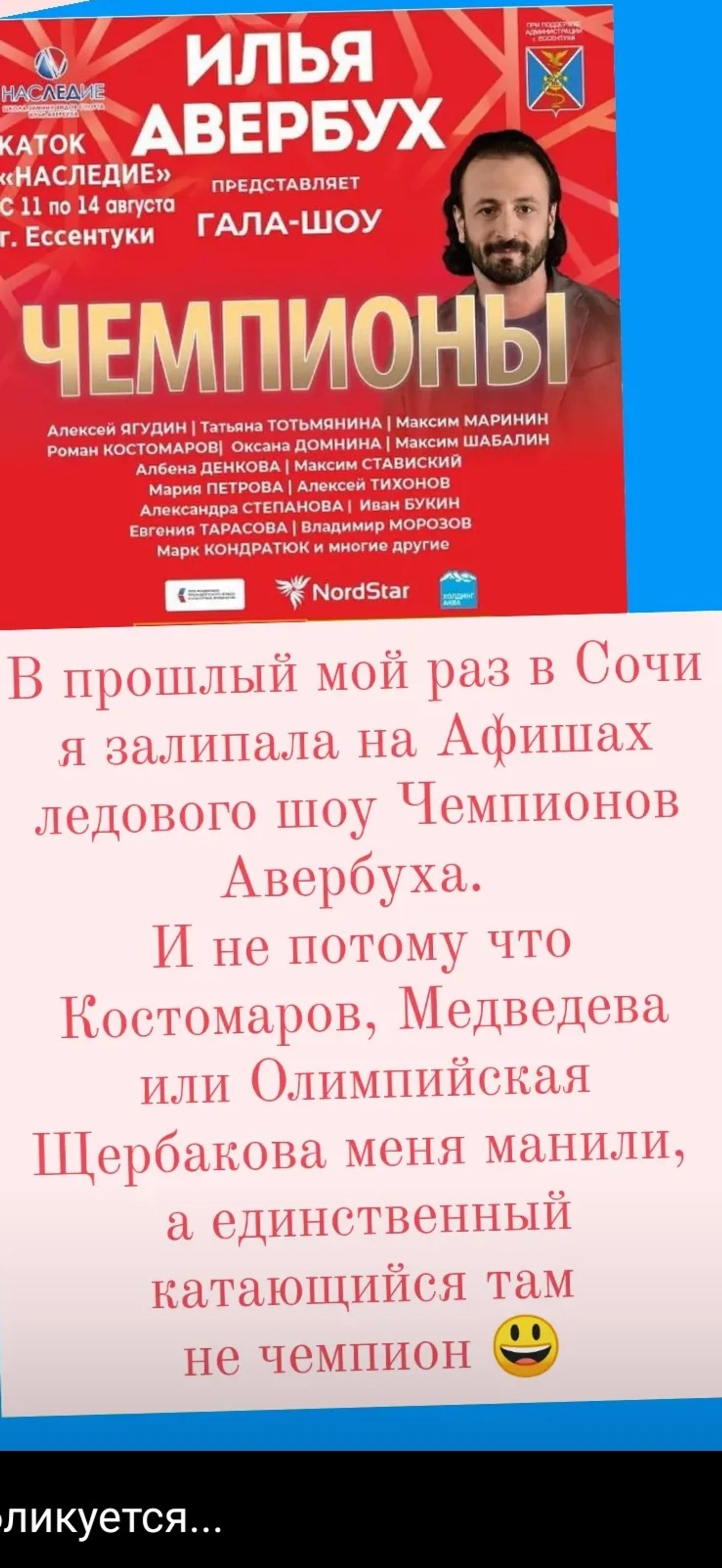 Впервые я оказалась в Сочи в этом году - 6 июня. Там познакомилась с прекрасной северной девочкой Лерой на проглках с которой я залипала не на всевозможных Биланах и Лепсах, а именно на афишах ледового шоу Авербуха.