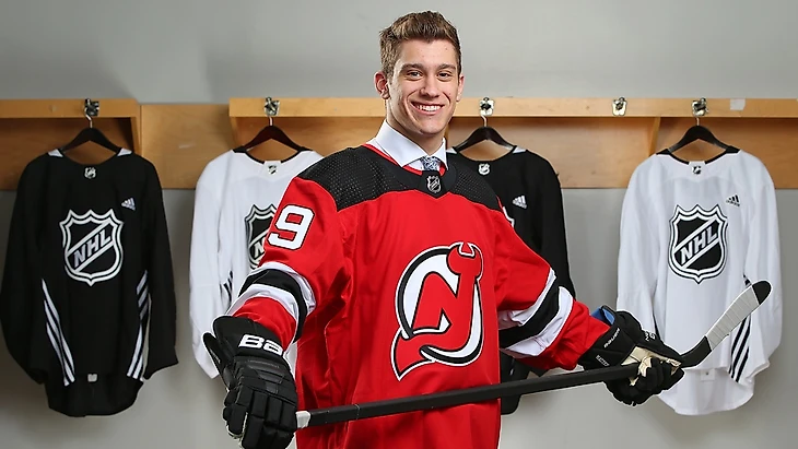 Характеристика: в представлении не нуждается. Парень в 18 лет обладает катанием, которому позавидует большинство игроков НХЛ. Великолепный технарь и распасовщик, действующий на предельно высокой скорости. Легко затаскивает шайбу в зону соперника, часто принимает нестандартные решения, запутывая игроков соперника. К слабым сторонам можно отнести разве что не самый лучший бросок и малые габариты. Несмотря на это, Хьюз — готовый игрок для НХЛ, который наверняка будет центрить вторую тройку нападения «Дьяволов» в следующем сезоне.