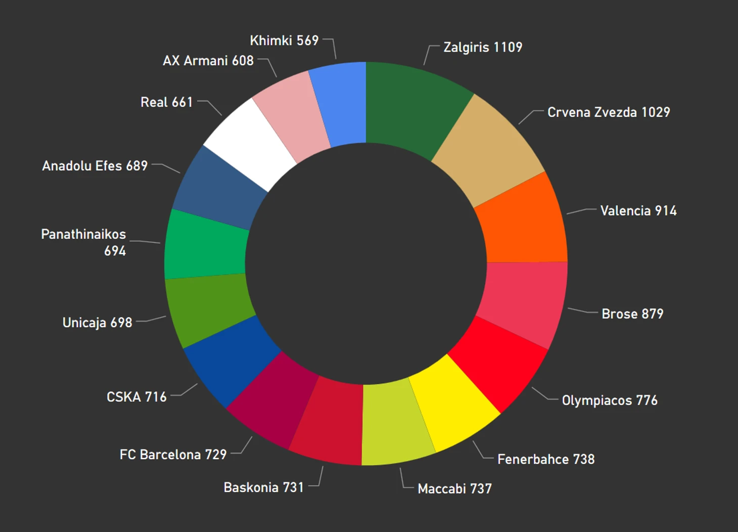 При этом по показателю True Rebounding Ratio (число подборов в соотношении с возможностями для подборов) «Жальгирис» занимает первое место.