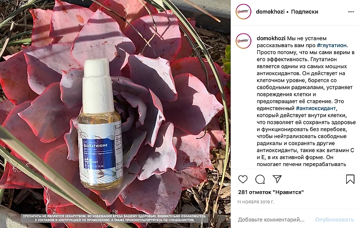 «Мои дорогие подписчики! Вы же помните, что у нас есть магазин, где вы можете приобрести различные добавки?! Мой любимый #glutathione - самый лучший антиоксидант. #Витамины B, C, D3K2, комплексы для иммунитета, расслабления или, наоборот, концентрации внимания. На все эти баночки с высокой биодоступностью действует скидка 15% по промокоду BLACK. Перейти в магазин можно по ссылке в шапке профиля или store.realhousekeepers.net» — в стороне от «Черной пятницы» Мария остаться не могла.