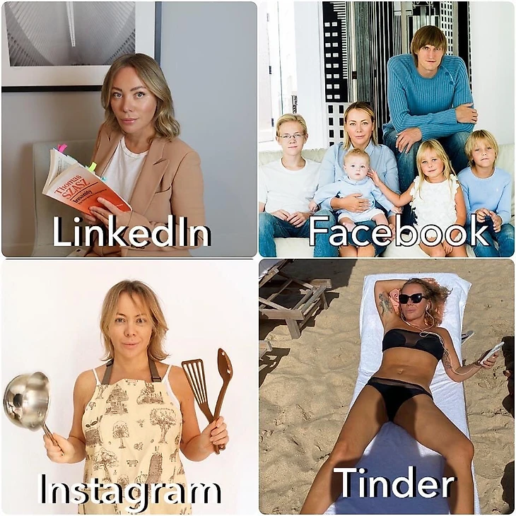 Из последнего — участие в популярном челлендже #LinkedInFacebookInstagramTinder с публикацией фото из четырех популярных соцсетей: