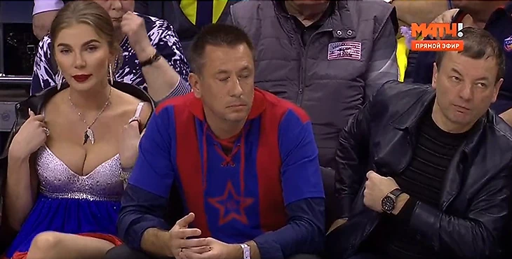 Форвард «Фенербахче» Никола Калинич едва не упал на болельщицу ЦСКА Катарину Конкс, сидящую в первом ряду, и ее супруг, председатель правления «Сибур-холдинг» Дмитрий Конов был вынужден оттолкнуть игрока.