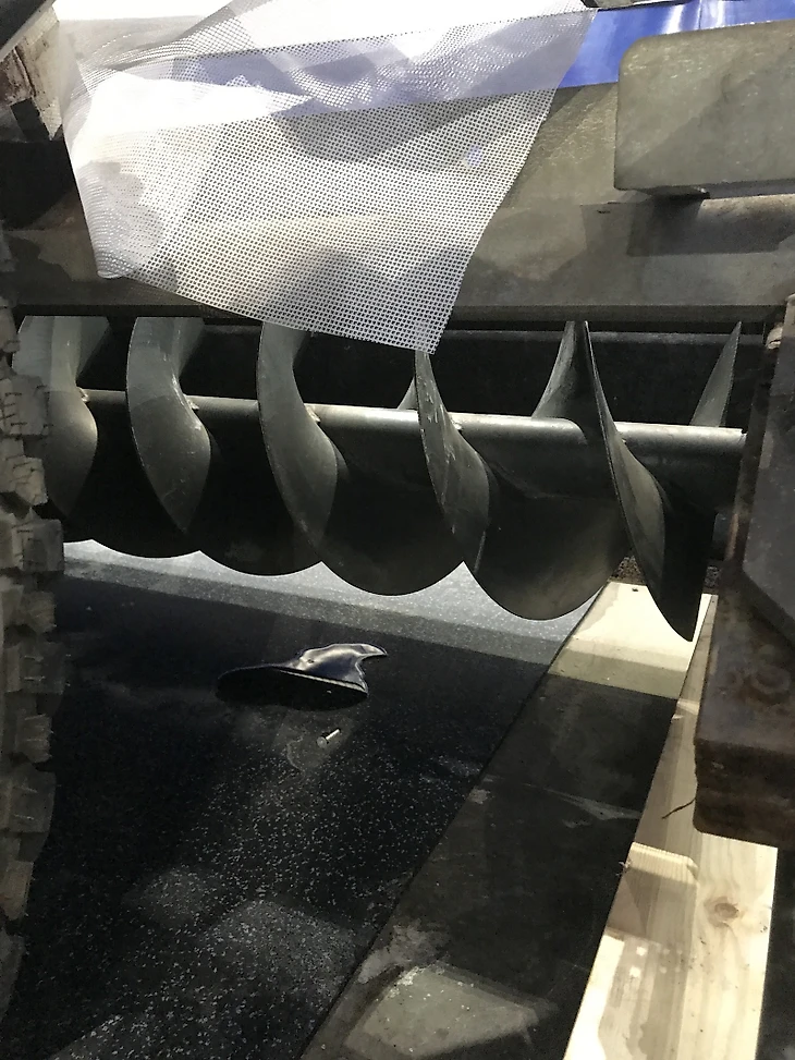 Через трубку сзади мы подаём воду на лёд. В самом столе у нас находится шнек горизонтальный и нож под ним, который срезает лёд, а шнек закидывает эту стружку в вертикальный шнек , с помощью которого все это оказывается в нашем бункере спереди.