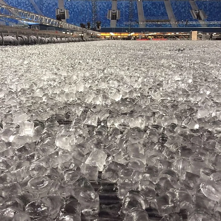 61 тонн кубиков льда . Используется как основа для нашего будущего льда . Данная технология достаточно новая и интересная.
