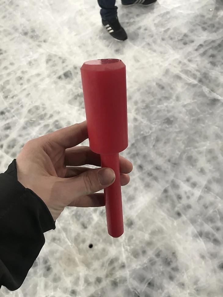 Сделаны они из смеси полеуретана и ещё какой-то химии. Они должны быть эластичны для того чтобы не ломаться когда выбивают ворота , но все равно они периодически ломаются. Во льду не просто дырки, туда установлены специальные закладные из метала , мы же не хотим просверлить случайно наши маты и холодильные трубки и увидеть фонтан холодильной жидкости.