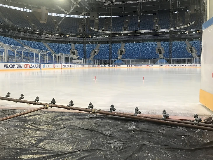 Преобразование Газпром Арены под хоккейный матч