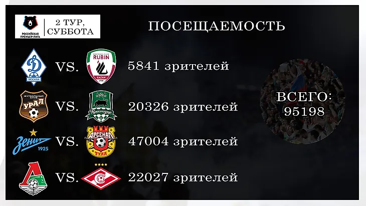 Автор Chabanyuk РПЛ, 2 Тур, суббота. Посещаемость матчей