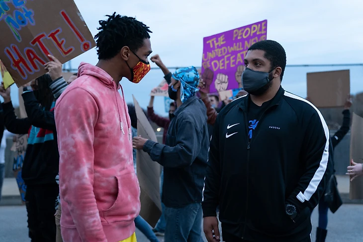 Пандемия коронируса, скрытый расизм со стороны полиции, акции Black Lives Matter», домогательства, домашнее насилие – все это проявится в «Стойкости». Такой подход можно рассматривать как отработку новостной повестки, а можно как фиксацию важных примет времени и попытку осмысления влияния этих процессов на подростках, в данном случае на тех, кто играет в баскетбол и мечтает о большой карьере, но сталкивается с глобальными явлениями в возрасте, когда зачастую и решается, пойдешь ли ты по пути профессионального спортсмена или выберешь иную жизнь.
