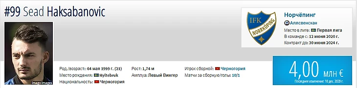 Примерная оценочная стоимость игрока от 4.400.000 евро.