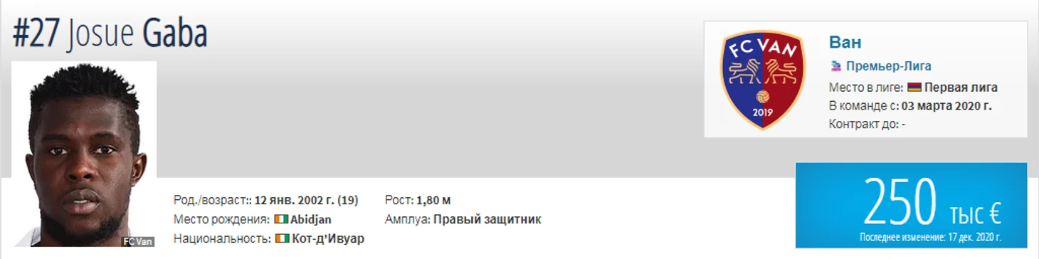 На пятое место поставим основного правого защитника клуба Ван. Жозуэ может сыграть справа и в четыре, и в пять защитников. Футболист достаточно молод для чемпионата Армении, так как ему недавно исполнилось 19 лет. Из сильных качеств выделим отбор, агрессивность, ускорения, скорость и физические данные.