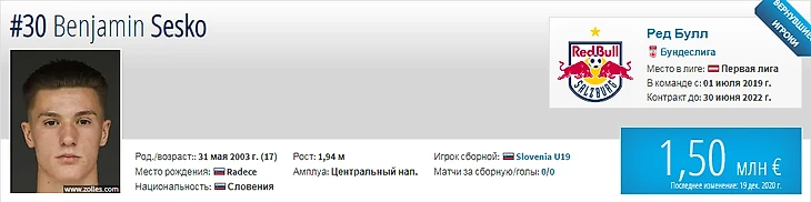 В 2019 году Зальцбург заплатил за трансфер Шешко из словенского клуба Домжале 2.500.000 евро. После чего его отдали в аренду, но в январе 2021 года он вернули его в свой состав. Парню сейчас 17 лет и ему сложно бороться за место в старте Зальцбурга, но думаю со временем у него появится больше игровых минут за основную команду. У него осталось всего 1,5 года по контракту, и в Зальцбурге явно будут думать над продлением контракта. Из сильных качеств выделим физические данные, игру корпусом, прыгучесть и игру головой (рост 1,94).