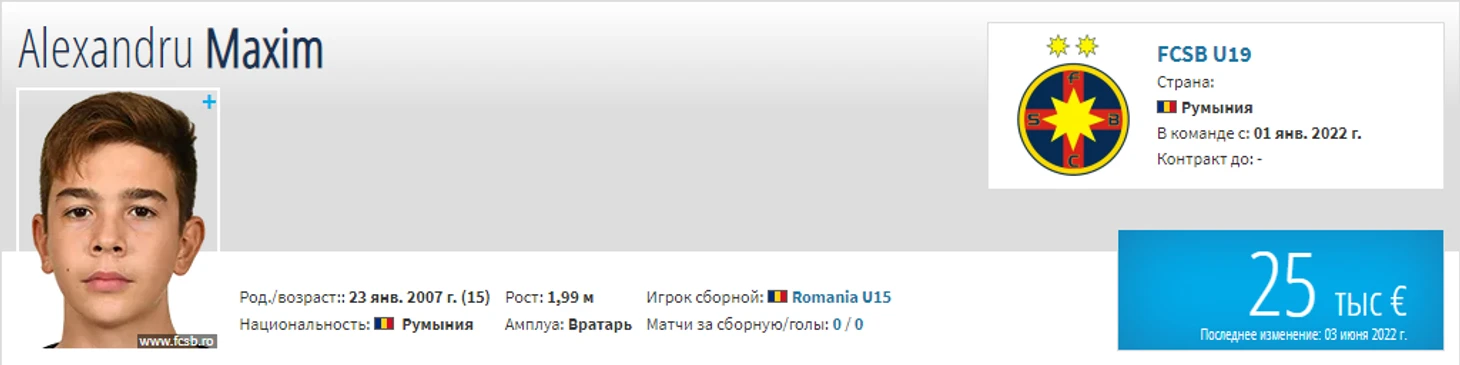 Вторым голкипером в нашем топе будет румын Александру Максим из Стяуа. Александру в свои 15 лет, просто невероятно высокий футболист (1,99), что позволяет ему отлично играть в борьбе за верховые мячи, и плюс он достаточно координирован. Сейчас он находится в составе Стяуа U-19, но многие отмечают, что со временем мы должны увидеть его в составе главной команды Стяуа.